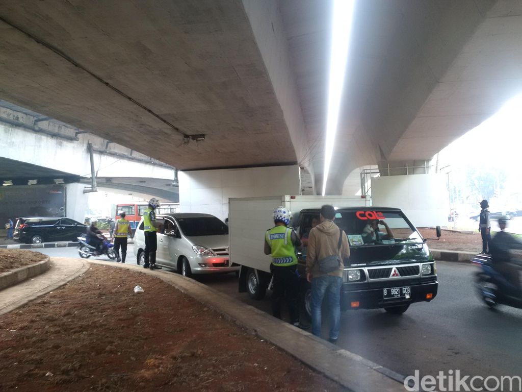 Pantauan detikcom pada Selasa (30/8/2016) sekitar pukul 07.00 WIB di wilayah persimpangan Kuningan, Jakarta Selatan, polisi melakukan penilangan terhadap empat mobil berpelat ganjil.