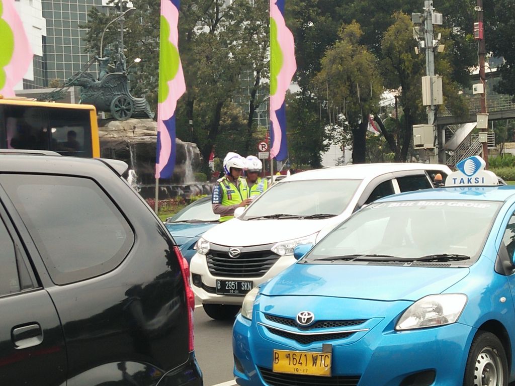 Lalu lintas dari Jl Medan Merdeka Barat arah Jl MH Thamrin lancar. Begitu juga lalu lintas sebaliknya. Pemandangan ini tidak pernah terjadi jika tidak ada penerapan ganjil genap.