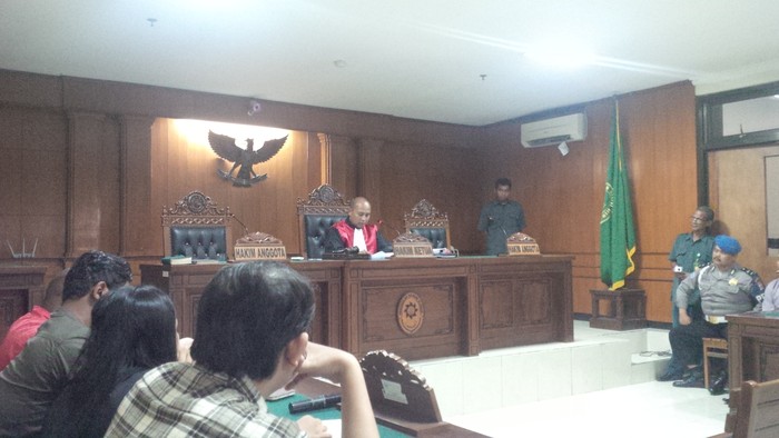 Hakim kemudian menyetujuinya, dan meminta empat anggota Brimob untuk keluar dari ruang persidangan.