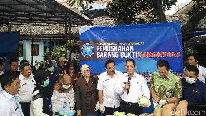 Pantauan di lokasi, Rabu (31/8/2016) pemusnahan dipimpin langsung oleh Kepala BNN, Komjen Budi Waseso di halaman parkir belakang kantor BNN, Cawang, Jakarta Timur. Selain itu pemusnahan juga dihadiri perwakilan Kejaksaan sebagai Jaksa Penuntut, perwakilan Pengadilan Negeri, LSM dan tokoh masyarakat lainnya. Sementara keenam tersangka yang dihadirkan menggenakan baju tahanan oranye dengan penutup muka.