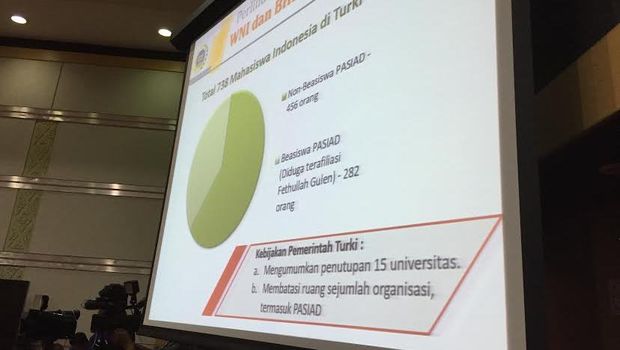Selain itu, Retno mengatakan Kemlu sedang melakukan koordinasi dengan kementerian terkait di Indonesia soal kelanjutan studi para mahasiswa itu. Pasalnya, sebanyak 282 dari 738 mahasiswa adalah penerima beasiswa PASIAD yang diduga terafiliasi dengan Fethullah Gulen.