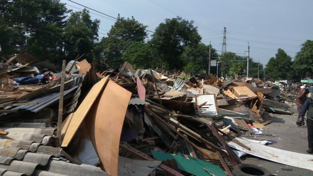 "Terima kasih Satpol PP!" teriak puluhan orang di lokasi, menyindir eksekutor penertiban yang telah meratakan bangunan mereka.