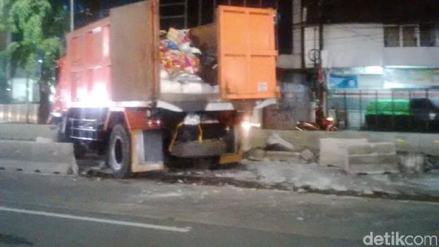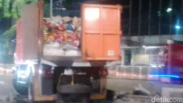 Hingga saat ini belum ada petugas di lokasi, namun warga dan pihak Dinas Kebersihan telah menghubungi Derek untuk mengevakuasi truk pengangkut sampah tersebut.