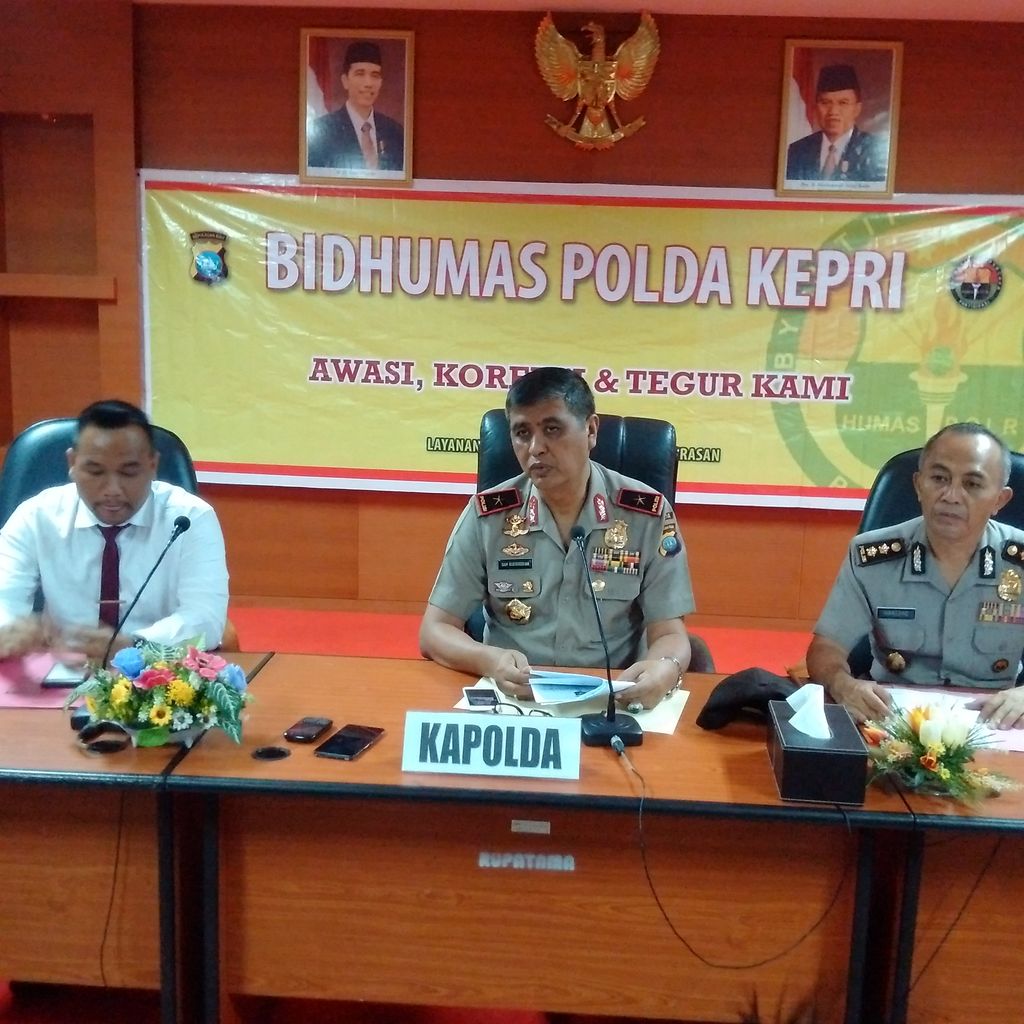 Kapolda Kepri Brigjen Sam Budigusdian dan jajaran memberikan keterangan (Foto: Agus Siswanto/detikcom)