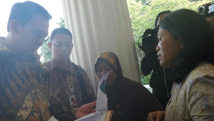 Jakarta - Seorang ibu yang anaknya menjadi korban kekerasan mengadu ke Gubernur DKI Jakarta Basuki Tjahaja Purnama (Ahok). Ibu itu bernama Tumihah. Anak dari Tuminah menjadi korban aksi kekerasan jalanan.
