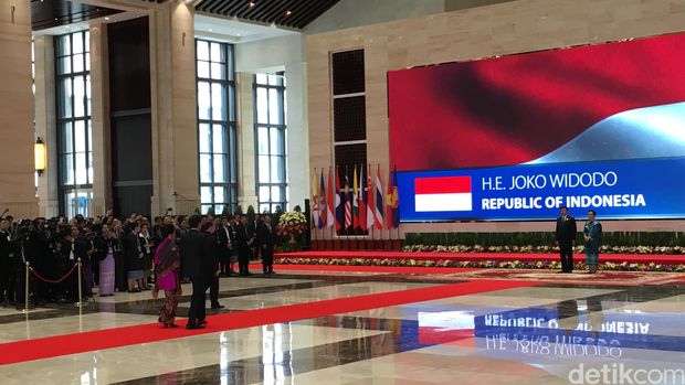 Setelah bersalaman dan berfoto, Jokowi kemudian diarahkan untuk masuk ke dalam ruang pembukaan KTT ASEAN. Setelah Jokowi, hadir PM Malaysia Najib Razak. Sebelum Jokowi datang, PM Jepang Shinzo Abe telah lebih dulu hadir.
