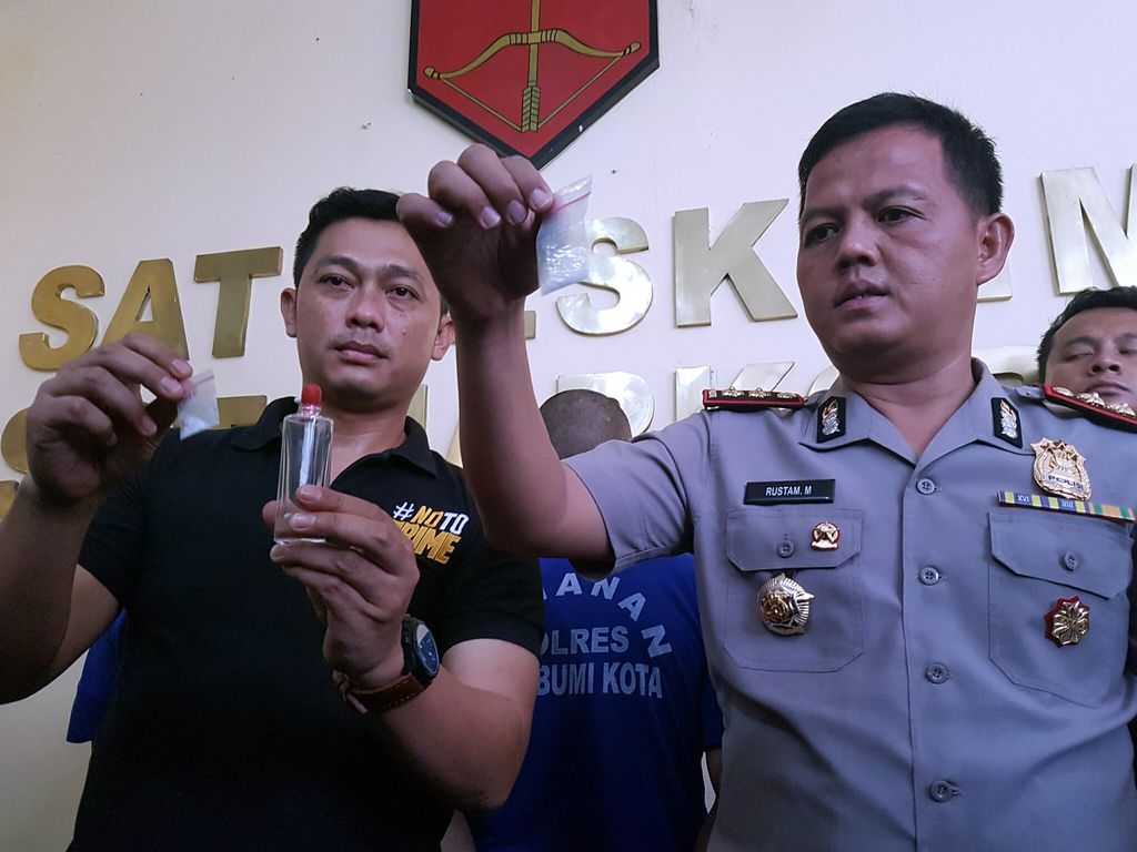 "Mereka tertangkap berikut barang bukti sabu yang disimpan dalam plastik krip bening seberat 1,2 gram. Sebuah bong alat hisap dan pipet kaca, ketika ditangkap tersangka tak bisa mengelak lagi," kata Kapolres Sukabumi Kota AKBP Rustam Mansur didampingi Kasatnarkoba AKP Suryadi, saat gelar perkara sekitar pukul 15.00 WIB, Rabu (7/9/2016).