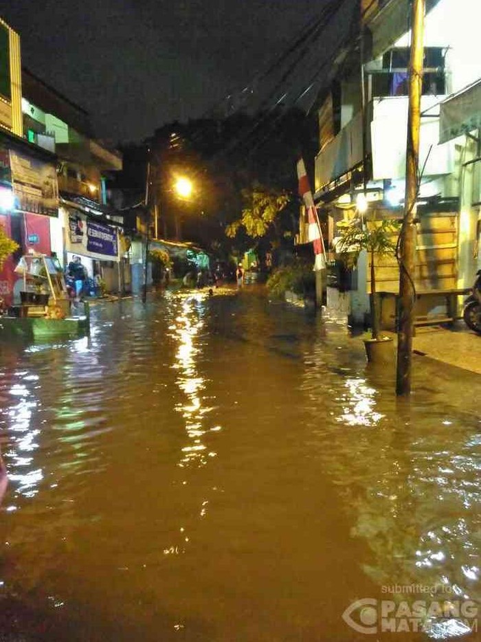 Wahyudie mengirimkan foto banjir itu melalui pasangmata.com. Tampak banjir menggenangi jalanan dan tak bisa dilalui kendaraan. Lokasi ini adalah jalan alternatif di dekat Gandaria City Mall.