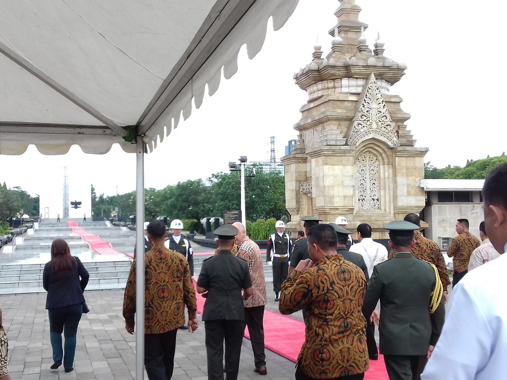 Kedatangan Duterte di TMP Kalibata disambut Pangdam Jaya Mayjen Teddy Lhaksamana. Begitu tiba dia langsung menaiki tangga-tangga di TMP Kalibata dan menuju tugu peringatan berlambang Garuda.