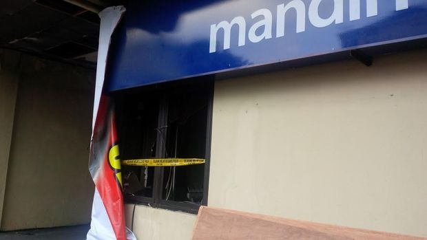 Sisa-sisa gosong pun terlihat di sana-sini. Tim labfor juga beberapa kali tampak membawa sejumlah barang keluar dari KCP Bank Mandiri, termasuk salah satunya adalah kotak dari besi.