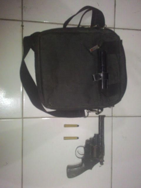 "Tas hitam tersebut berisi satu unit senjata api laras pendek rakitan jenis revolver warna hitam berikut dua butir peluru tajam yang masih aktif, bertuliskan PIN 7.62 x 45 PHH," kata Kabid Humas Polda Kalbar Kombes Suhadi.