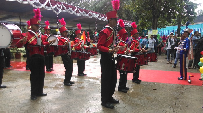 Penampilan berikutnya tak kalah menarik. Para siswa SLB Pangkalpinang unjuk gigi menampilkan kebolehan mereka bermain drumband. Meski memiliki berbagai keterbatasan, anak-anak ini dapat menyuguhkan tampilan drum band yang memukau layaknya anak normal. Mereka tampak percaya diri dan memainkan musik dengan irama teratur.