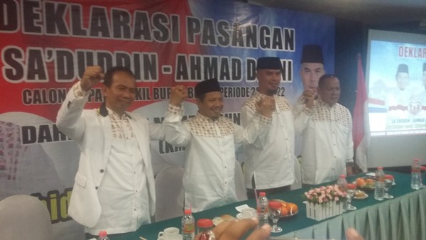 Sementara itu, cawabup Ahmad Dhani yang juga musisi kondang Tanah Air dalam pidatonya menyampaikan bahwa dirinya telah resmi menjadi politisi pasca deklarasi cabup dan cawabup Bekasi. Dirinya pun berjanji untuk selalu mendukung dan setia pada Sa'duddin.