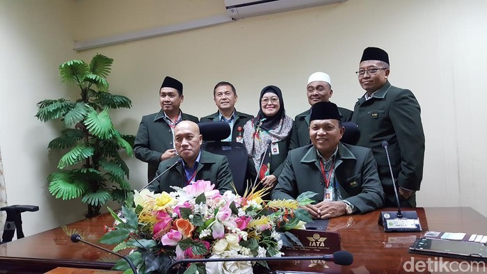 Ketua KPHI Mohammad Samidin Nashir dan wakil ketua KPHI Imam Addaruqutni serta para anggotanya yang terdiri dari Lilien Ambarwiyati, Abidinsyah Aziz Siregar, Agus Priyanto Sumarto, Samsul Maarif, dan Muhammad Thoha, menggelar jumpa pers di kantor Daker Makkah, Senin (19/9/2016). Mereka menyampaikan sejumlah temuan dan catatan, serta rekomendasi ke depan.