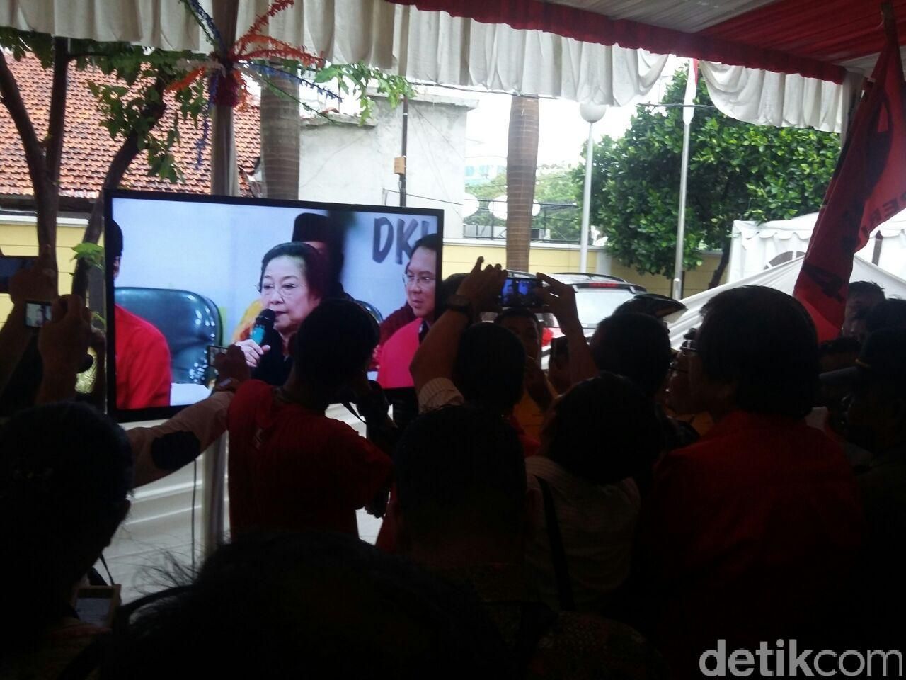 Keramaian bertambah riuh saat Ahok-Djarot tiba di KPU DKI sekitar pukul 13.00 WIB. Meski tidak diizinkan masuk, mereka dengan setia memantau proses pendaftaran Ahok-Djarot di KPU yang didampingi oleh Ketum PDIP Megawati Soekarnoputri.