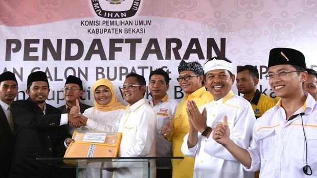 Sebelum berangkat ke KPU, Neneng yang merupakan bupati pertahana itu menggelar deklarasi bersama wakilnya di Kampung Tambun, Desa Kertasari, Kecamatan Pebayuran, Kabupaten Bekasi, dengan dihadiri massa pendukung yang datang lengkap memakai atribut mulai dari kaos, syal, hingga bendera, Rabu (21/9/2016)