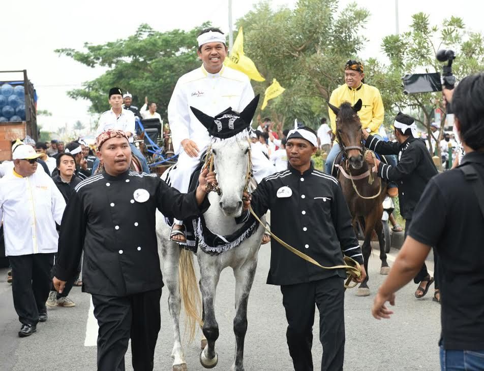 Khusus Neneng dan Eka mereka menaiki sebuah kereta kencana lengkap dengan kudanya. Sementara Dedi beserta Sekjen DPD I Golkar Jabar, Ade Barkah Suherman, menaiki kuda yang mengarak rombongan di bagian paling depan.