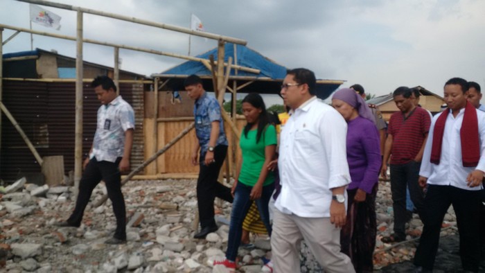 Fadli Zon tiba di Kampung Akuarium pukul 14.10 WIB, Jumat (23/9/2016). Fadli langsung menuju ke sebuah tenda komando yang dihuni beberapa keluarga. Di tenda itu, Fadli Zon berdialog dengan seorang ibu yang belum lama ini melahirkan seorang bayi perempuan.