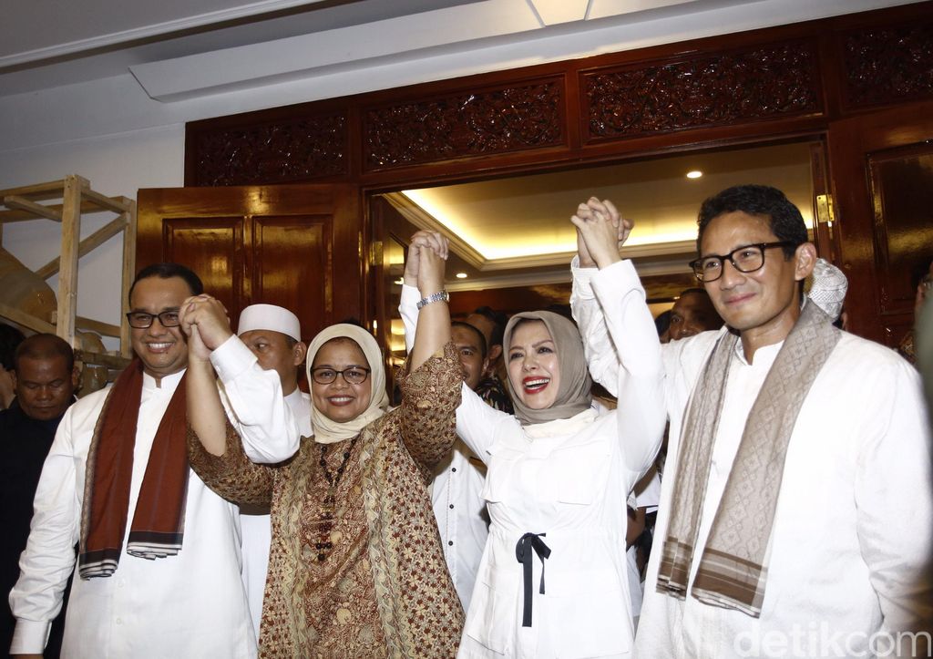 Mereka langsung diarahkan menuju ke ruang pendaftaran cagub dan cawagub DKI Jakarta. Sejumlah tokoh mendampingi di antaranya Sekjen Gerindra Ahmad Muzani, Ketua DPD DKI Gerindra Mohamad Taufik, Ketua DPD DKI PKS Syakir, dan Sekjen PKS Mustafa Kamal. Ketum Gerindra Prabowo Subianto dan Presiden PKS Mohamad Sohibul Iman tak ikut mendampingi.