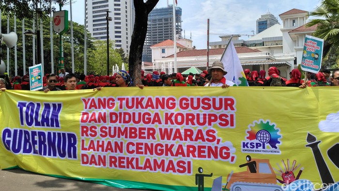 "Hari ini kita menuntut Gubernur DKI kita meminta tidak ada lagi upah murah. Sudah cukup DKI upahnya di bawah Bekasi," tegasnya.