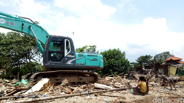 Sementara, di RW 12, sebuah alat berat ekskavator tampak standby membersihkan sisa-sisa puing pembongkaran kemarin. Sedangkan, bangunan yang belum dibongkar akan diawasi Pemprov DKI.