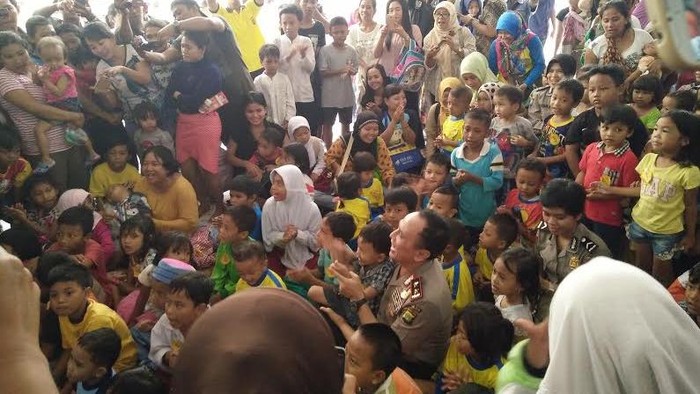 Kapolda menyapa hangat warga Bukit Duri yang telah tempati unit rusun di Rawa Bebek. Kegiatan di rusun tidak hanya sekadar pembagian sembako dan pengobatan gratis. Ada juga perlombaan mewarnai 'Sicipol' oleh jajaran polwan dari Polres Jaktim maupun Polda Metro Jaya.