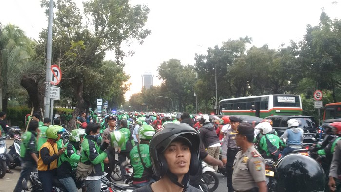 Ribuan driver Go-Jek kemudian pulang ke arah Jl Thamrin, Jakarta Pusat. Lalu lintas saat driver Go-Jek membubarkan diri sempat macet dari Tugu Tani menuju Jl Medan Merdeka Selatan. Sedangkan arah sebaliknya tersendat.