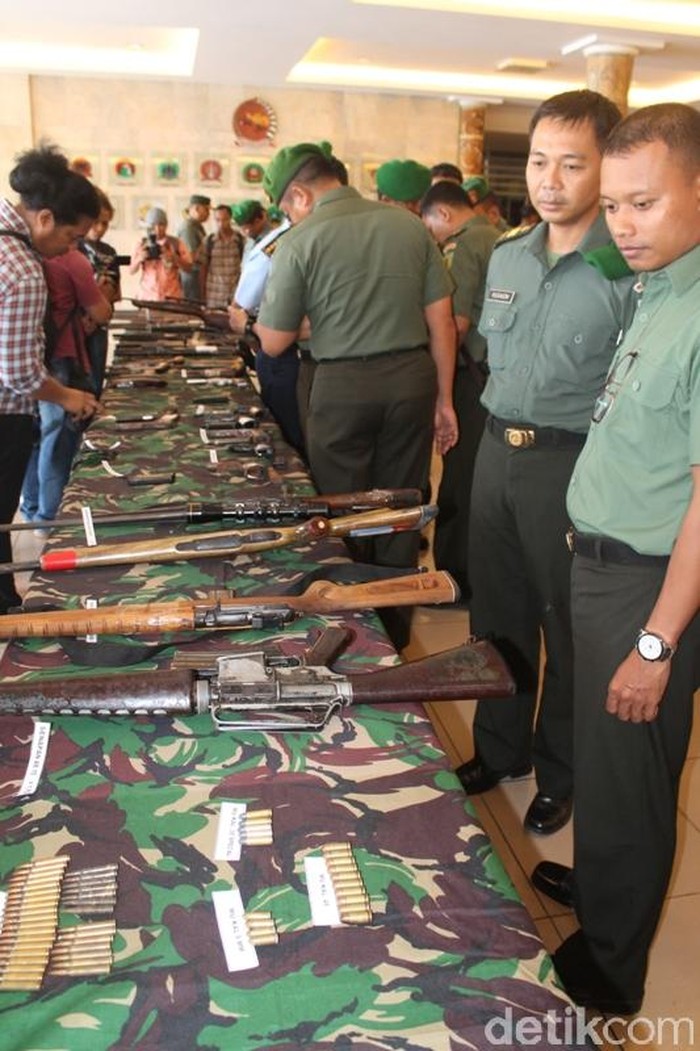 Pangdam Cenderawasih Mayjen TNI Hinsa Siburian merinci, 59 senpi itu terdiri dari 28 pistol, 31 senjata laras panjang, dan 6 granat. 44 Senpi di antaranya merupakan senjata rakitan.
