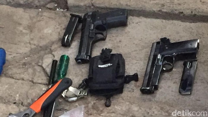 Dari pelaku yang tertembak mati, polisi mengamankan pistol Tiger kaliber 9 milimeter, pistol Ekol Firat Magnim kaliber 9 milimeter, 12 butir peluru kaliber 9 milimeter dan 3 butir peluru kosong.