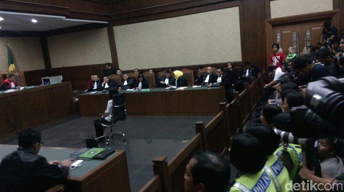 Pantauan di PN Jakpus, Jl Bungur Besar Raya, Kamis (27/10/2016), keamanan di ruang sidang yang disesaki pengunjung diperketat. Barisan depan bangku pengunjung pun tak diisi pengunjung sidang dari kalangan sipil.