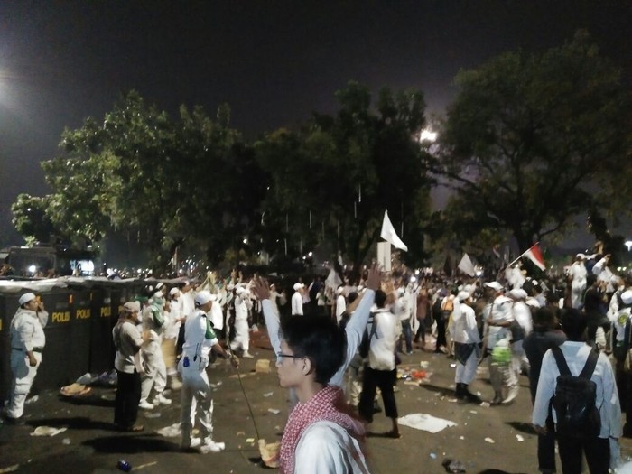 Massa FPI meminta tenang, tapi masih ada pelemparan botol air mineral.