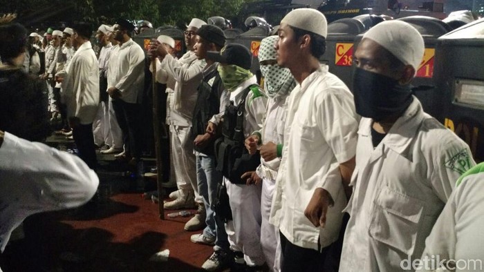 Massa FPI Bentengi Polisi dari Massa HMI di Depan Istana
