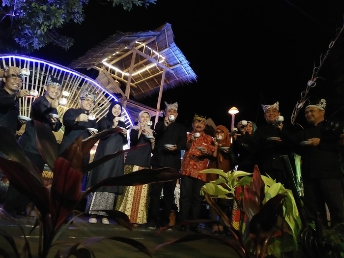 Pegelaran 'ngopi sepuluh ewu' merupakan puncak dari perayaan hari kopi di Banyuwangi. Meja-meja dan kursi tertata rapi untuk menghidangkan kopi kepada tamu-tamu yang datang.