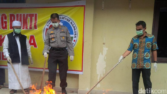 Pemusnahan itu sendiri juga disaksikan oleh kedelapan tersangka. Sebelum dilakukan pemusnahan, seorang ustaz melakukan tausiyah.