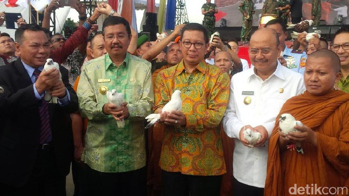 Seribuan umat Buddha tampak hadir dalam acara tersebut. Menag Lukman Hakim mengapresiasi acara itu.
