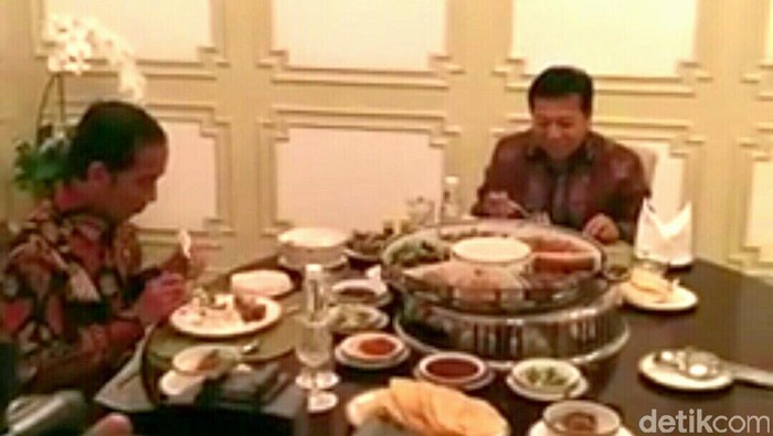 Jokowi lalu mengajak Novanto ke ruang makan yang berada di sebelah ruang rapat. Keduanya tampak santai berbincang-bincang sembari menikmati hidangan.