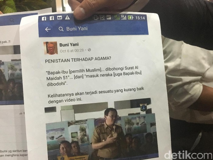 Ini Postingan Status Buni Yani yang Menyeretnya Jadi Tersangka