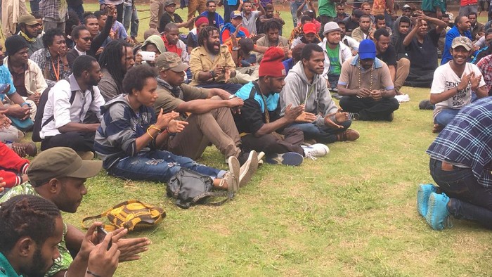 Massa menuntut kebebasan Papua Barat. Massa menggunakan atribut lambang bintang kejora.