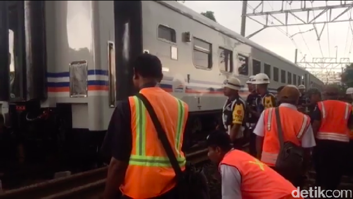 Pantauan detikcom di lokasi, Kamis (8/12/2016) sekitar pukul 17.02 WIB, gerbong bagian tengah yang sempat ke luar rel telah kembali ke jalur. Petugas masih menunggu lokomotif untuk menarik kereta tersebut.