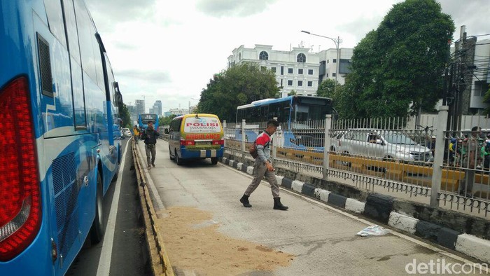 Foto: Aditya Fajar Indrawan-detikcomBus Transjakarta menabrak pejalan kaki di Mampang, Jaksel, Jumat (9/12/2016) |
