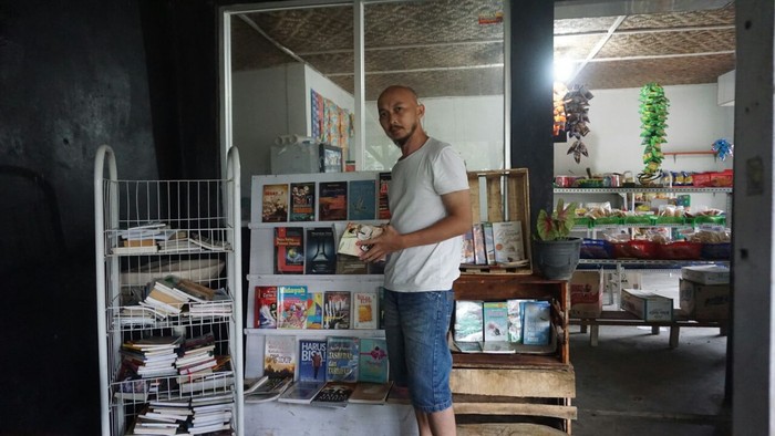 Ikhsan mengungkapkan, meski sudah berdagang sejak tiga tahun lalu tapi taman baca tersebut baru ada sejak 5 Mei 2016 lalu. Sedikitnya terdapat 800 buku dengan berbagai tema, bisa dibaca di tempat ini secara gratis. Kebanyakan buku tersebut adalah sumbangan dari teman-temannya.