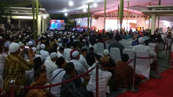 Pantauan detikcom di lokasi acara, Jalan Warung Sila, Ciganjur, Jakarta Selatan, Jumat (23/12/2016) pukul 19.00 WIB, sudah berkumpul ribuan santri dan juga tokoh lintas agama. Menteri Sosial Khofifah Indar Parawansa juga telah hadir.