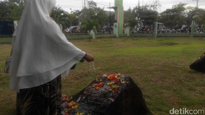 Masyarakat tidak kuasa menahan air mata saat berdoa untuk keluarga atau sanak familinya di kuburan massal. Mereka duduk bersila sambil membaca Surat Yasin. (aan/aan)