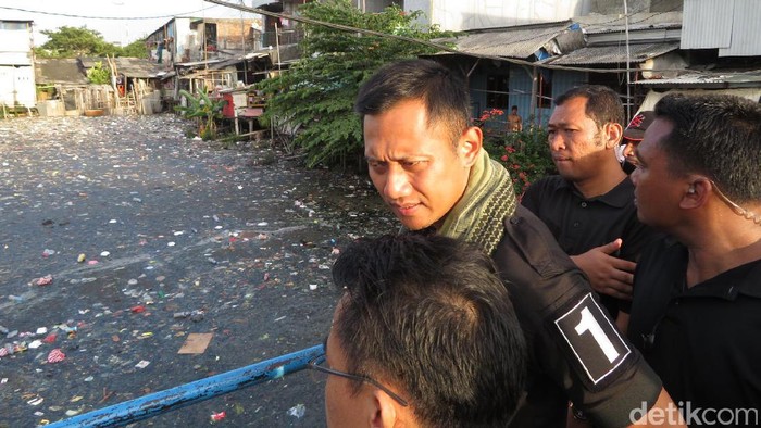 Foto: Gibran Maulana Ibrahim/detikcomAgus Yudhoyono lihat kali di Sunter |