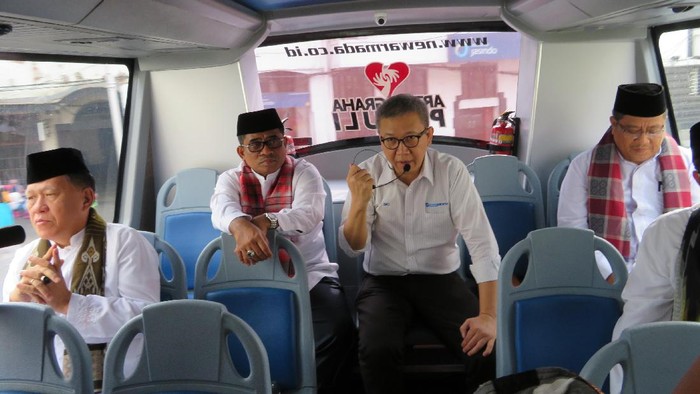 "Sekali-sekali kita naik bus. Sambil jalan-jalan biar santai," kata Sumarsono di dalam bus sebelum berangkat dari halte Balai Kota, Jalan Medan Merdeka Selatan, Jakarta Pusat, Kamis (29/12/2016).