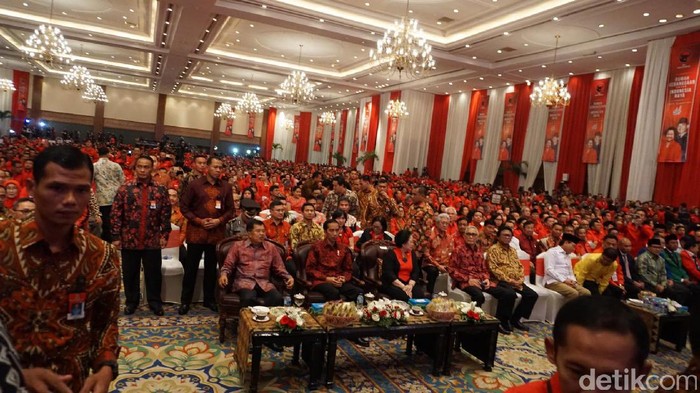 Acara dimulai pukul 10.00 WIB di Assembly Hall JCC, Senayan, Jakarta, Selasa (10/1/2017). Tepat setelah Presiden Jokowi dan Wakil Presiden Jusuf Kalla memasuki ruangan bersama Ketum PDIP Megawati Soekarnoputri, acara langsung dimulai.