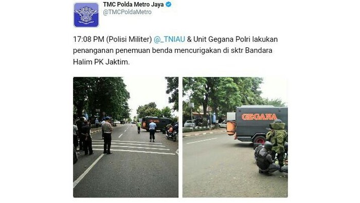 Tim Gegana Polri telah melakukan penanganan terhadap benda tersebut. Kapolres Jakarta Timur Kombes Agung Budijono mengatakan benda mencurigakan itu bukan bom, melainkan sebuah koper.