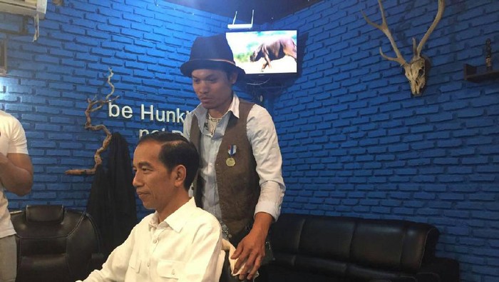 Hairstylist bernama Jumadi terpilih untuk mencukur rambut Jokowi. Mantan Gubernur DKI itu tak menyebut gaya rambut pilihan.
