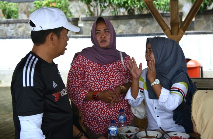 Warga menemui Dedi, yang baru saja selesai berolahraga dan menyantap soto di bagian belakang rumah dinas, tepatnya di Saung Katresna. Seperti hari-hari biasa, setiap pagi Dedi selalu menyempatkan diri berolahraga dan menyantap aneka makanan yang disediakan untuk siapa pun, termasuk warga.