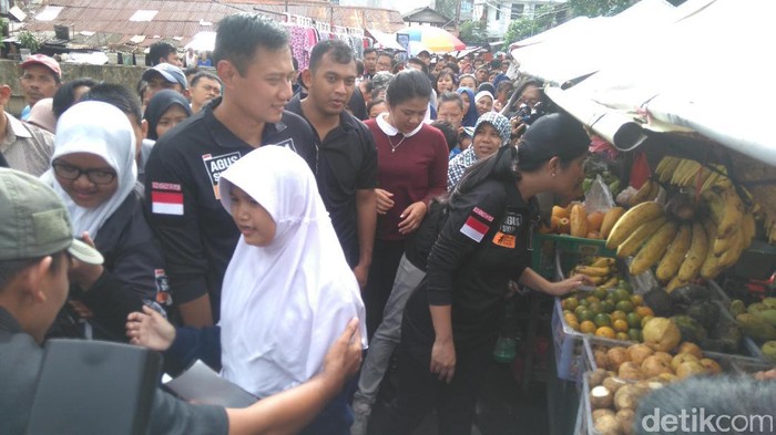 Agus tiba sekitar pukul 08.15 WIB di Pasar Rengas, Kebayoran Baru, Jakarta Selatan, Sabtu (29/1/2017). Agus dan Annisa Pohan tampak serasi mengenakan baju tacticool yang menjadi ciri khas mereka.